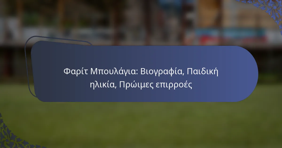 Οι πρώιμες επιρροές του Φαρίτ Μπουλάγια έπαιξαν καθοριστικό ρόλο στη διαμόρφωση της καριέρας του στο ποδόσφαιρο. Κύριοι μέντορες, υποστήριξη από την οικογένεια και καθοριστικές εμπειρίες ενίσχυσαν το πάθος του για το άθλημα, καθοδηγώντας τον προς την επαγγελματική επιτυχία.